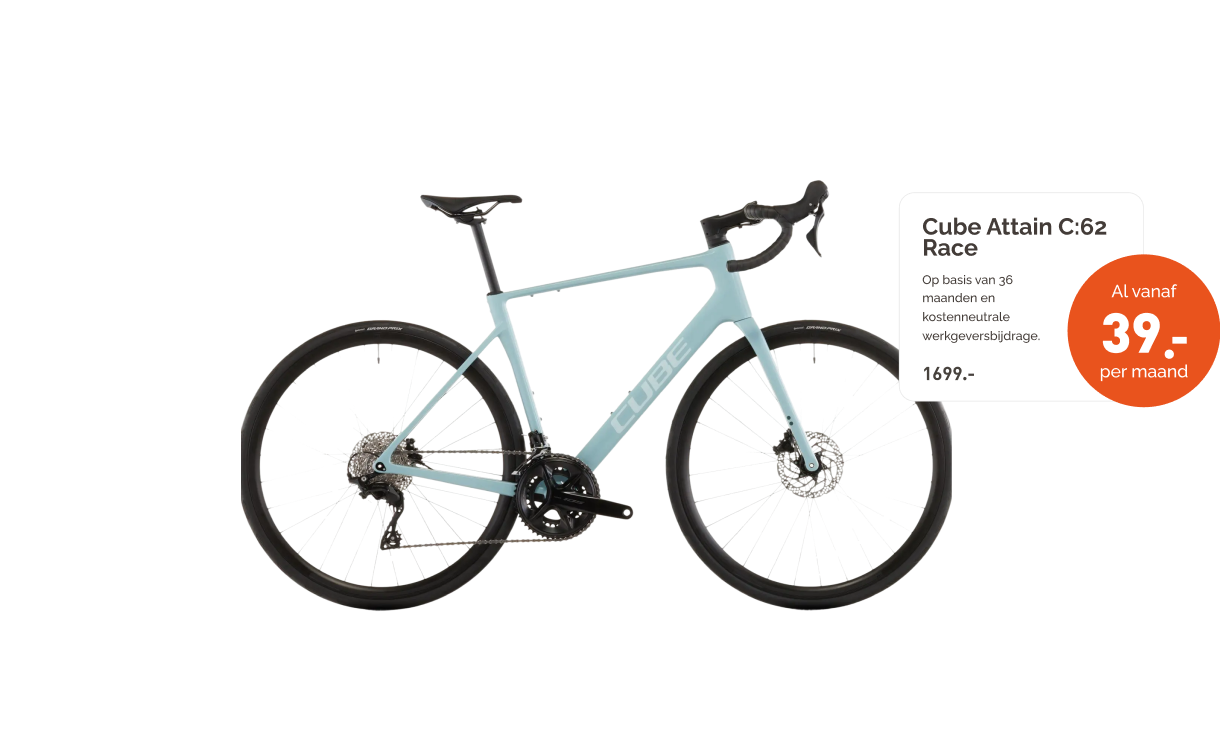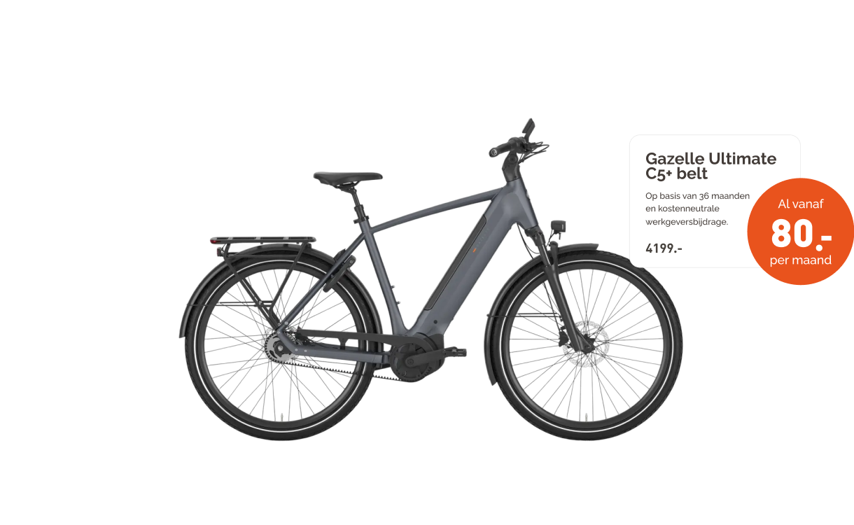 Binnen een paar klikken weet je waar je aan toe bent. Je betaalt via je brutosalaris en profiteert van fiscaal voordeel. Zo rijd je al snel een betere fiets dan je zelf zou kopen — voor een verrassend laag maandbedrag. En elke rit levert je iets op: energie, ontspanning en plezier.